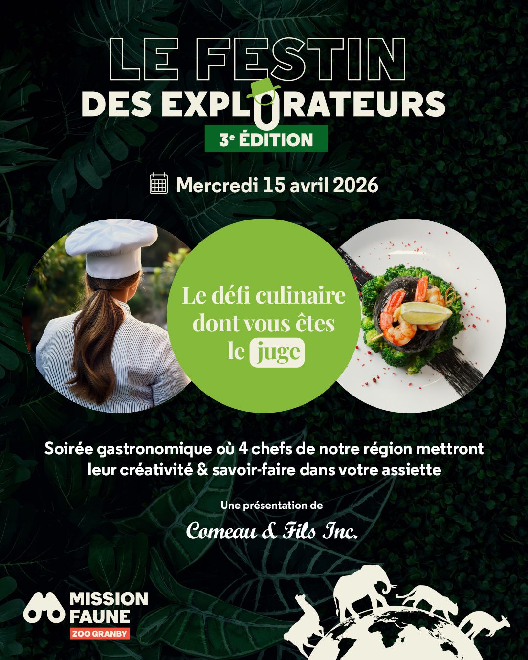 La Fondation Mission Faune Zoo de Granby est fière de vous inviter à la 3e édition de son événement bénéfice : Le Festin des Explorateurs !