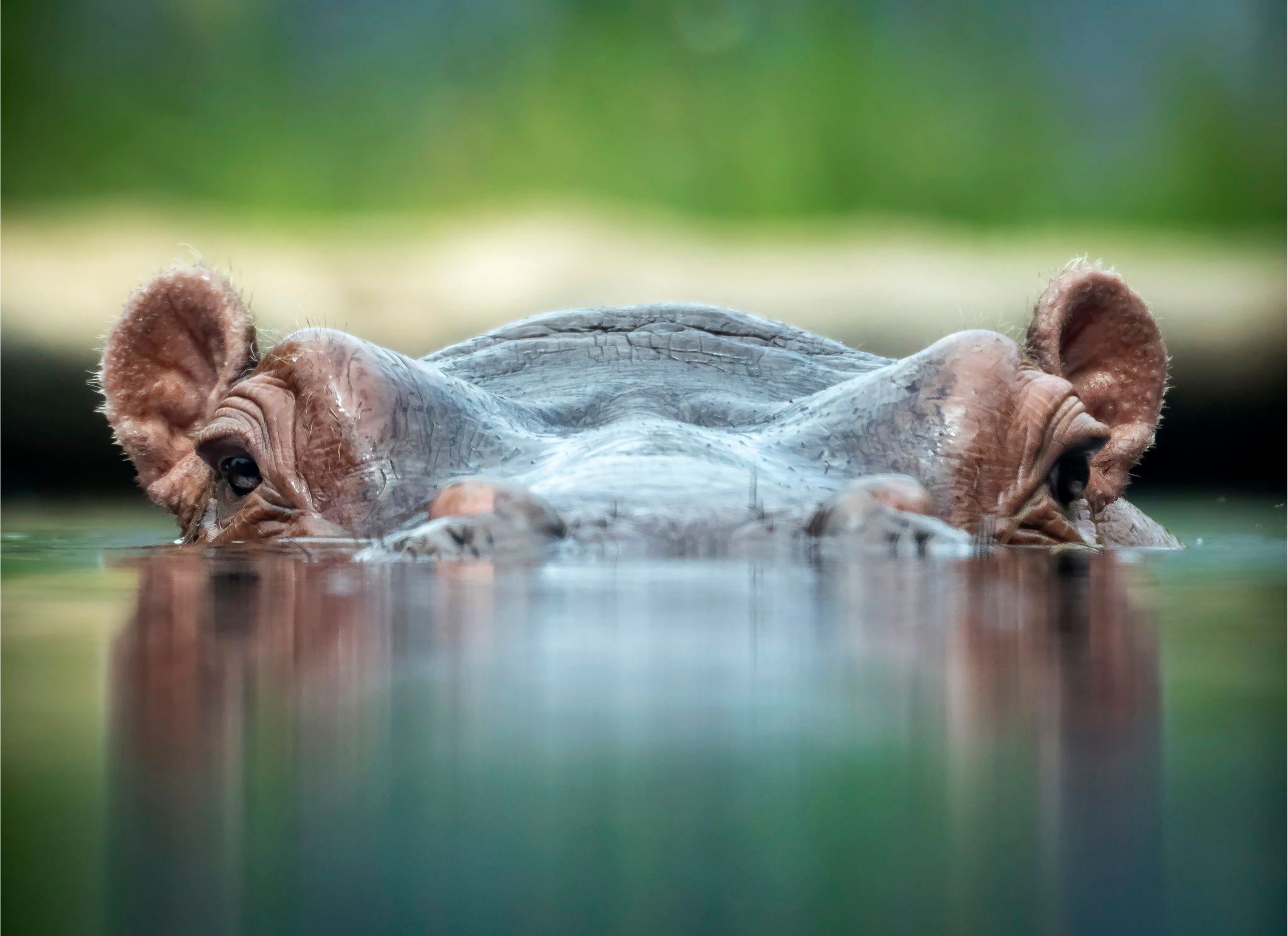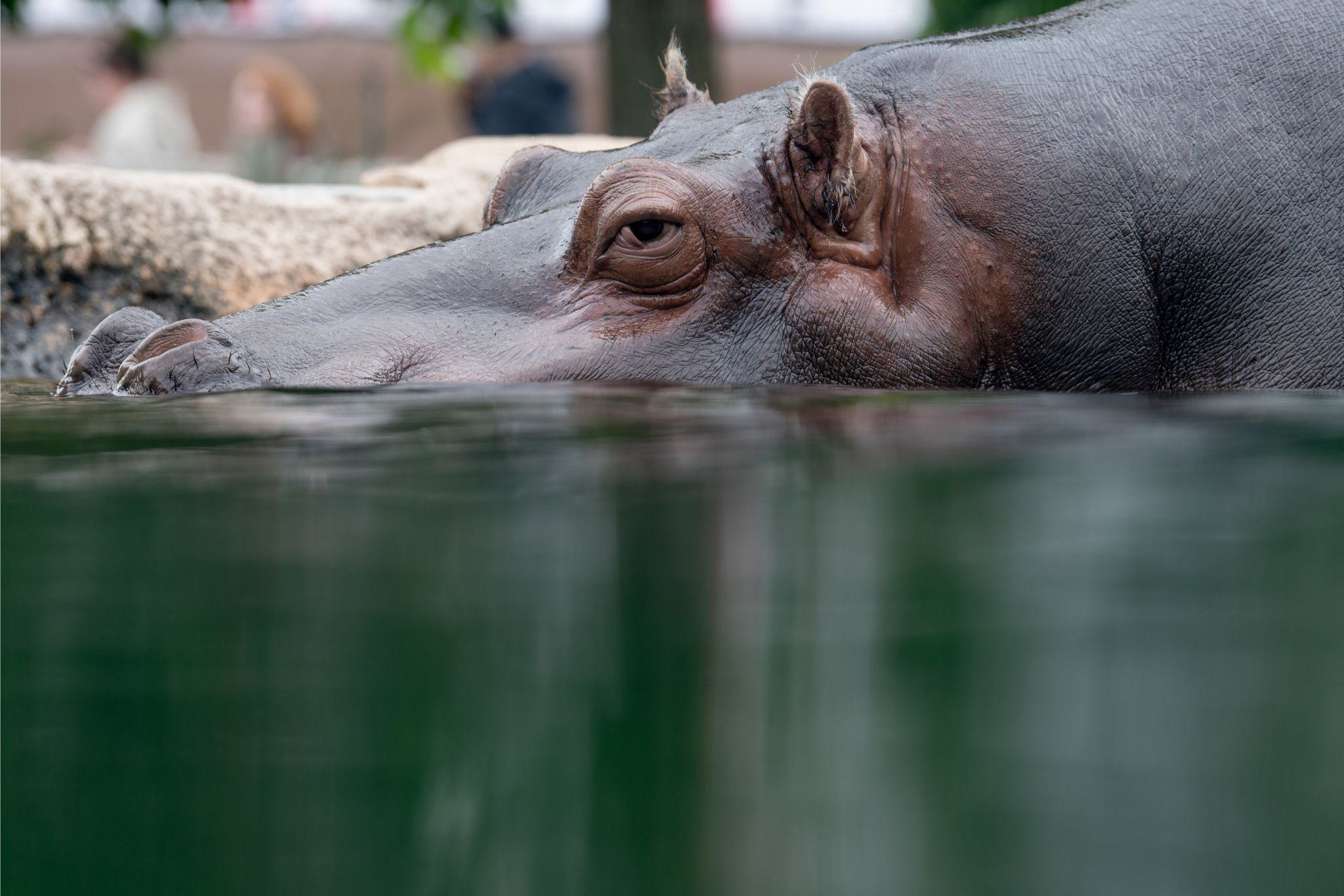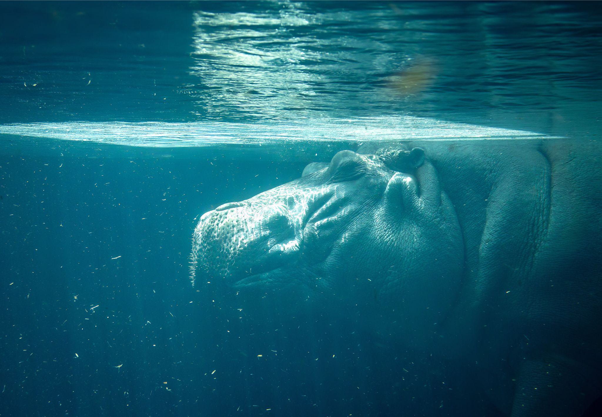 En plus de l'aider à supporter son poids, l'eau protège sa peau des chauds rayons du soleil. L'hippopotame peut retenir sa respiration 5 minutes en immersion. Ses yeux, ses narines et ses oreilles sont situées sur le dessus de la tête, lui permettant de capter les signaux de son environnement sans sortir le corps de l'eau.