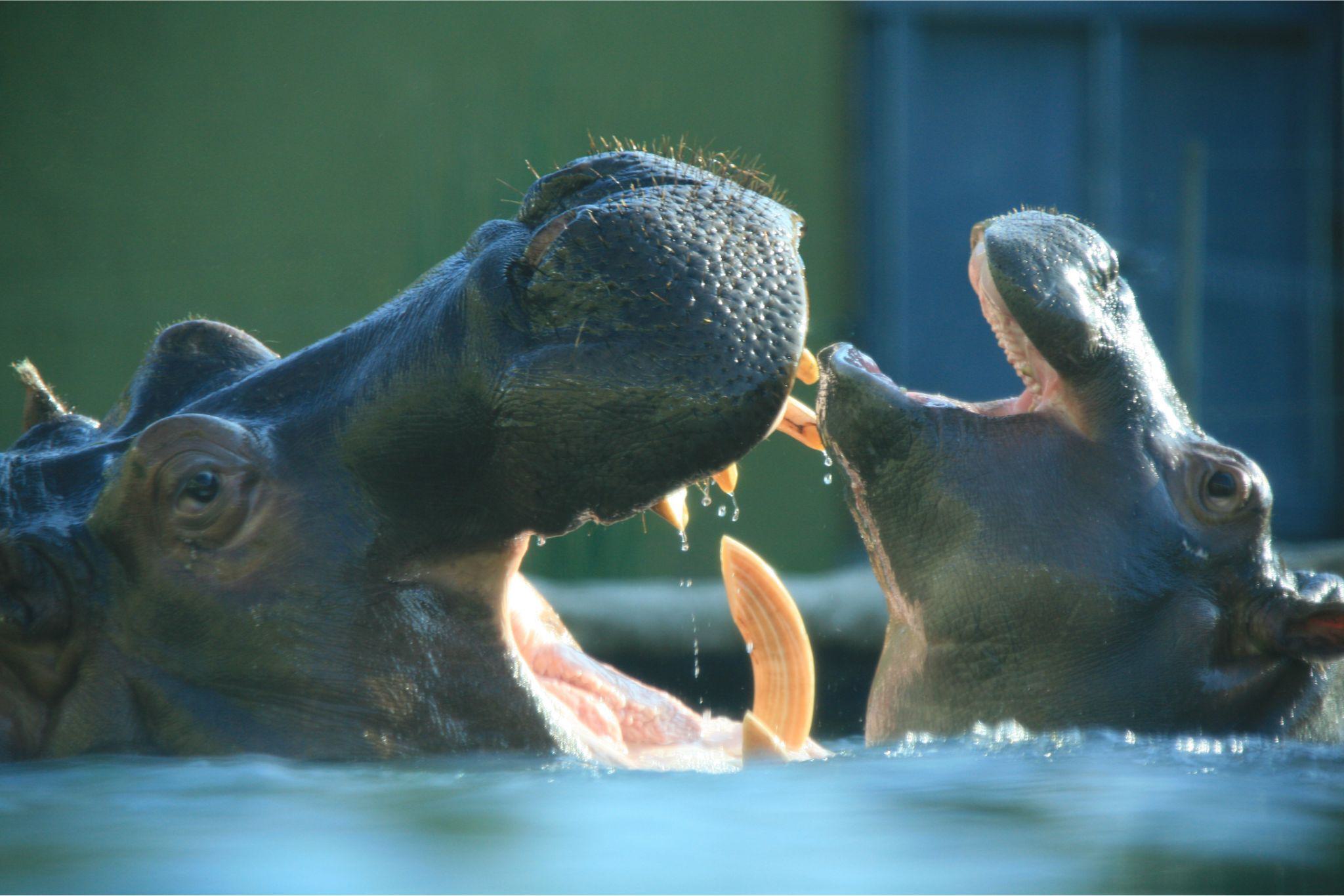 Les hippopotames sont grégaires. Un mâle dominant s'octroit un bout de plage, en guise de territoire, et veille sur les quelques femelles et les jeunes mâles qui composent son groupe. L'arrivée d'un intrus déclenche immédiatement une vive réaction. Si le nouvel arrivant n'adopte pas une position de soumission, les affrontements sont inévitables.