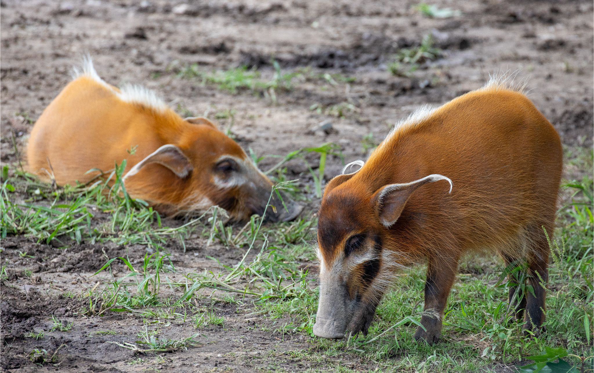 With their striking reddish-brown coat, they're the most colourful and smallest of the Suidae family.