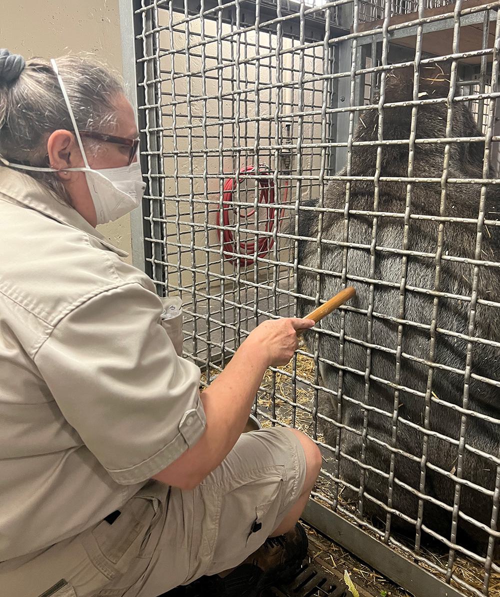 Le Zoo de Granby étant la seule institution zoologique au Québec à héberger des gorilles, Suzanne a développé, au fil du temps, une expertise précieuse et unique. Le lien de confiance qu’elle a tissé avec les 4 gaillards sous sa responsabilité est beau à voir, particulièrement quand on l’observe en pleine action, durant une séance d’entrainement biomédical.