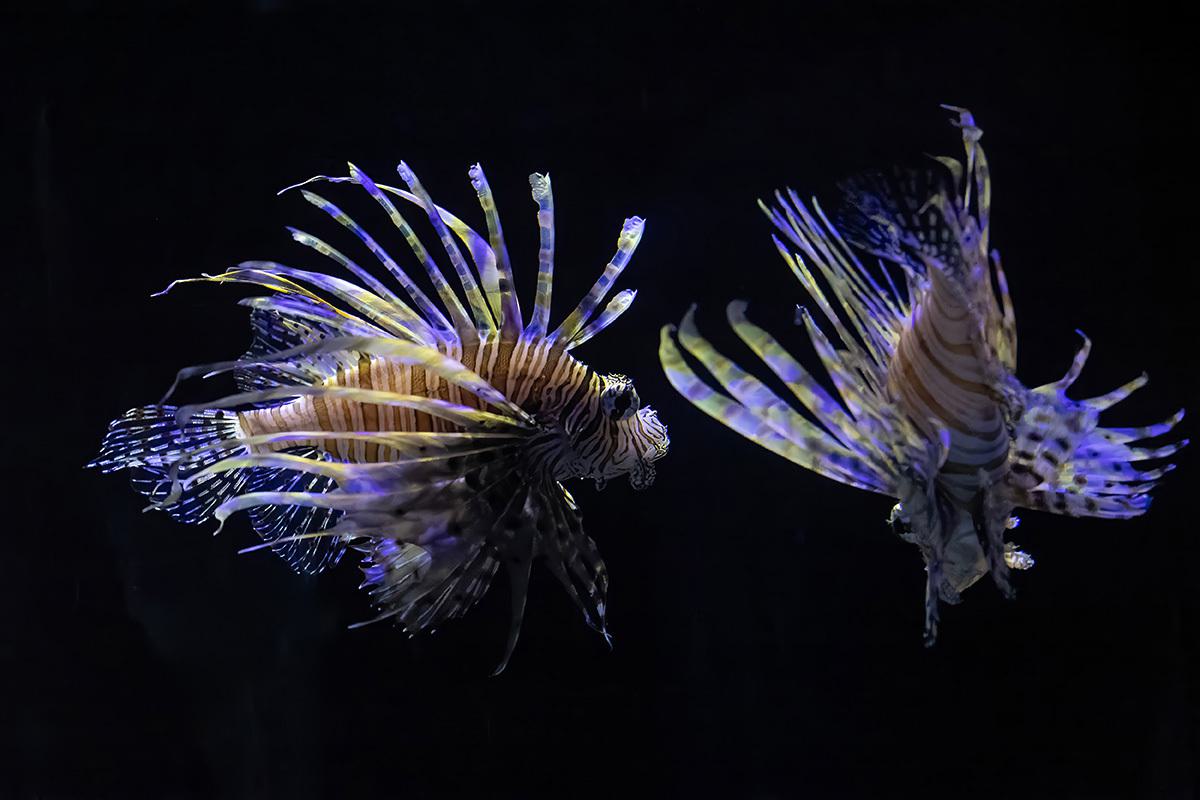 Spectaculaire, élégant, mais vorace, le poisson-lion, ou rascasse volante, est originaire du Pacifique, mais a été introduit dans l’océan Atlantique et dans la mer des Caraïbes, où il est désormais considéré comme une espèce envahissante. Et vaut mieux garder une distance sécuritaire avec ces beautés des récifs : les longues et délicates épines qui forment ses nageoires dorsales, anales et pelviennes contiennent un puissant venin neurotoxique qui peut indisposer sérieusement un humain. Les plus gros spécimens peuvent faire près de 2,5 kg!