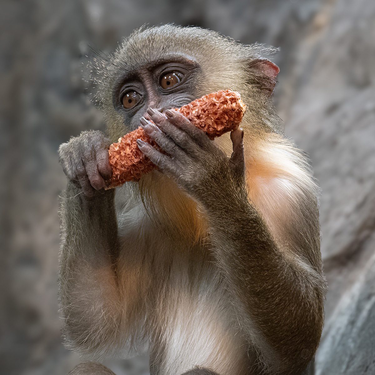 A dedicated team prepares and serves fresh food in sufficient quantities, requiring minimal effort from the animals. Since searching for food is one of the activities animals spend the most time on in the wild, it is our responsibility to make meals an opportunity for residents to express species-typical feeding behaviors and to provide stimulation.