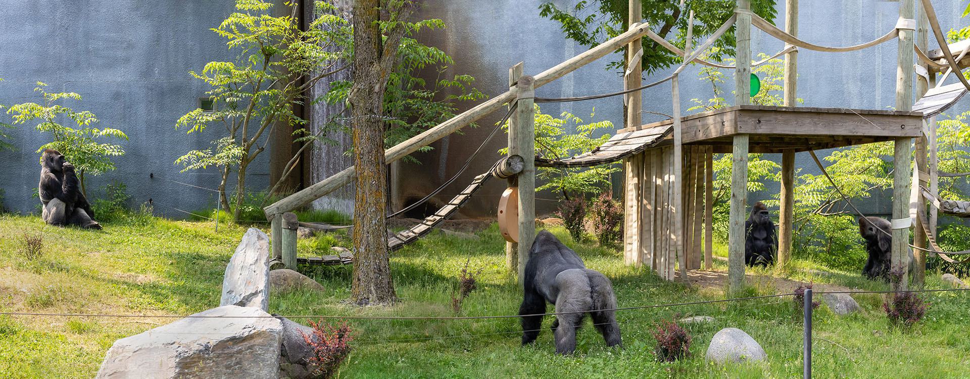 The Zoo de Granby has been housing 4 male gorillas by having them live in pairs until last spring: Zwalani and Jawara occupied one space, while Louis and Kuchimba another. But the Zoo’s animal experts wanted these 4 burly guys, each of them weighing almost 150 kg, to be able to live together. The goal here is to share all the available space and enjoy the benefits of socializing with each other, which is essential for this species.