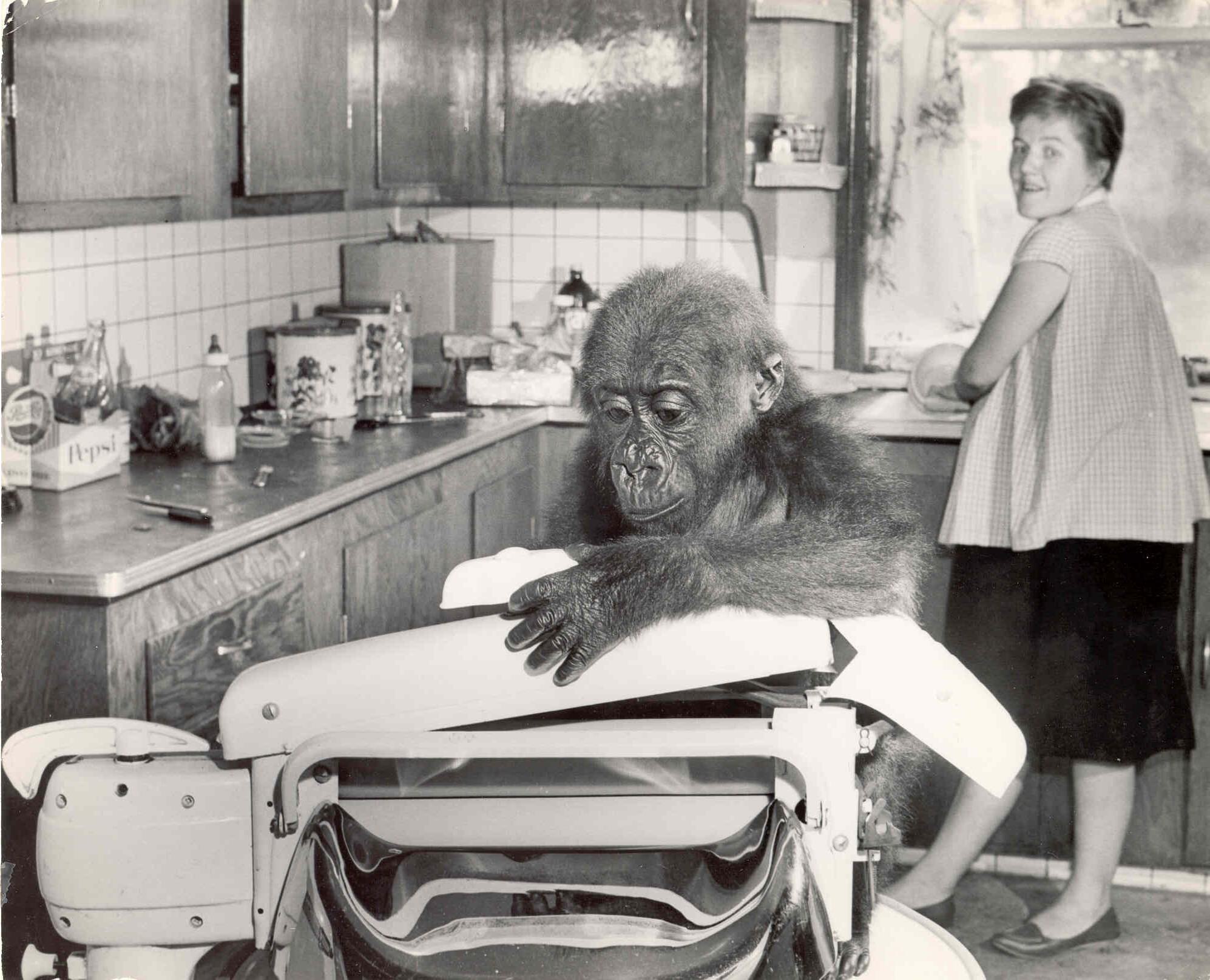Aucun animal au Zoo n'a été aussi populaire que Mumba le gorille. Premier gorille mâle au Canada, il arrive à Granby en 1961 et devient instantanément une vedette : plus de 200 journaux à travers le pays en font le pensionnaire le plus célèbre que le Zoo de Granby ait connu. Étant donné l'ampleur des soins qui doivent lui être prodigués, il est d'abord confié à une famille de la région, la famille Charron, qui le bichonne comme un enfant. Évidemment, on ignorait à l'époque que ce contact rapproché avec les humains marquerait pour toujours le comportement du gorille: l'animal ne s'est, entre autres, jamais reproduit. La petite histoire de Mumba aura notamment permis de mieux comprendre les impacts de l'imprégnation humaine sur les espèces sauvages et d'encadrer les pratiques observées désormais dans notre institution.
