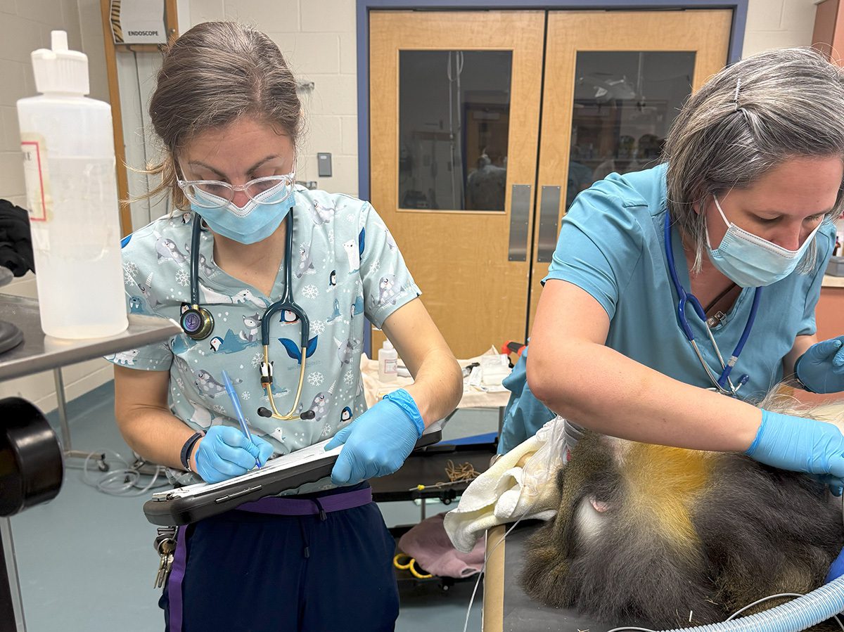 Un exemple bien réel de cette réalité est celui de Tumbili, notre mâle mandrill. Né au Zoo de Granby en 2004, le coloré primate a grandi ici avant de séjourner quelques années au Zoo de Calgary, puis de revenir à Granby en 2018 pour prendre la relève comme chef de clan. Mais dernièrement, les équipes ont observé chez lui une diminution de ses activités quotidiennes et des signes d’inconfort.