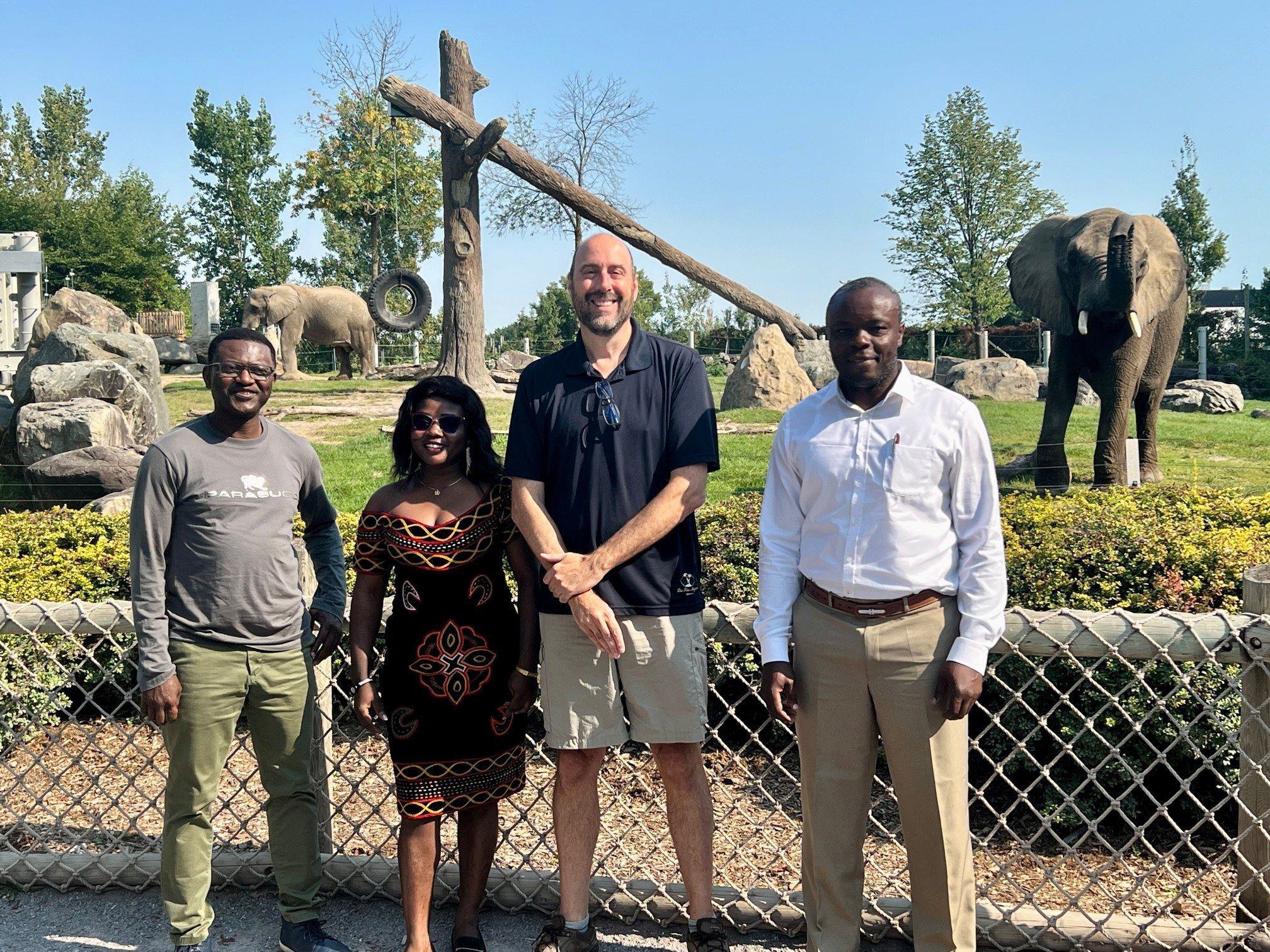 Sur la photo, de gauche à droite : Robert Wiladji, France Anougue, Patrick Paré et Isaac Djoko Blaise au Zoo pour le renouvellement de l’entente entre l'Université Concordia et le Zoo de Granby.