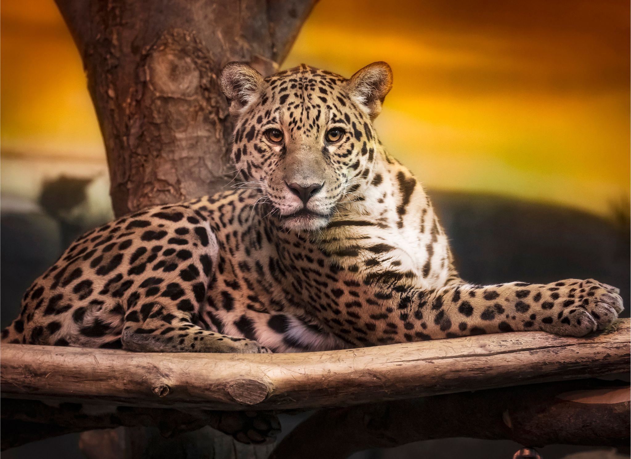 These mainly nocturnal creatures rely on a specialized layer of cells at the back of their eyes to move about at night, and they're powerful enough to pursue prey both by swimming and by climbing trees. The name "jaguar" is derived from the term "jaguara", a word of Tupi-Guarani origin, which means "carnivore that catches prey in a single bound".