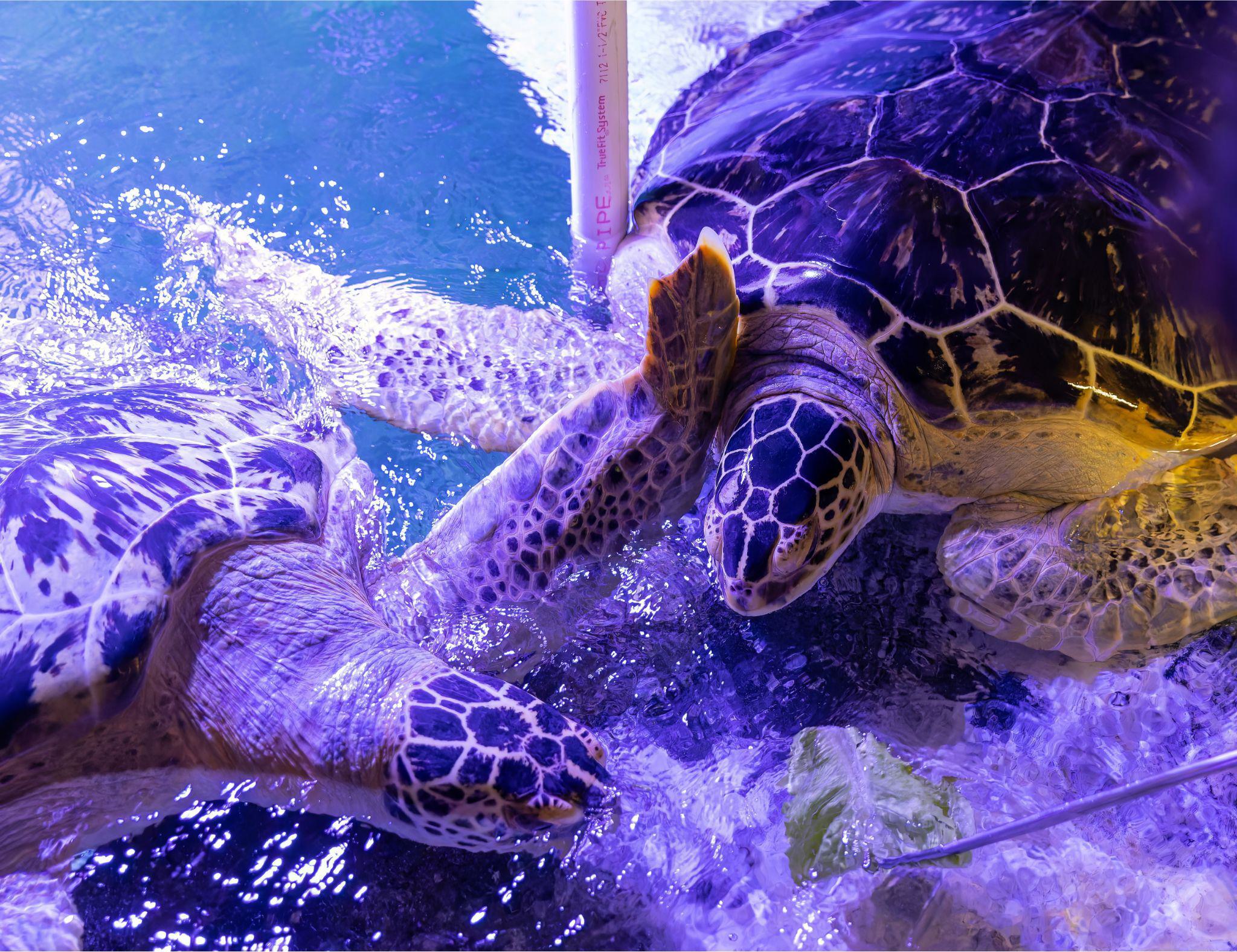 From the moment they hatch, they spend their entire lives in the water. Only the females return to land to lay their eggs. Their front legs have developed into swimming paddles, allowing them to swim quickly and with great ease. When they are active, they usually come up for air every 5 minutes.