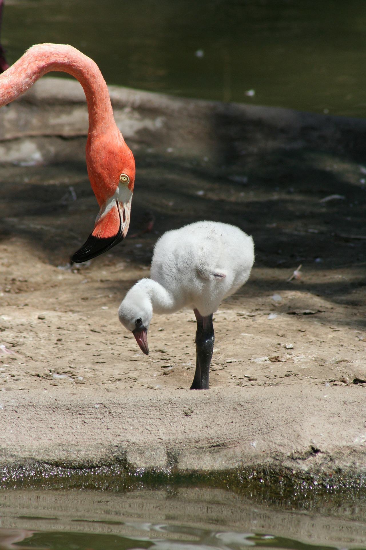 The incubation period lasts from 28 to 30 days. At birth, the chick is covered with white down and its beak is straight! Only when they reach 2 years of age will their greyish plumage give way to their beautiful pink feathers.