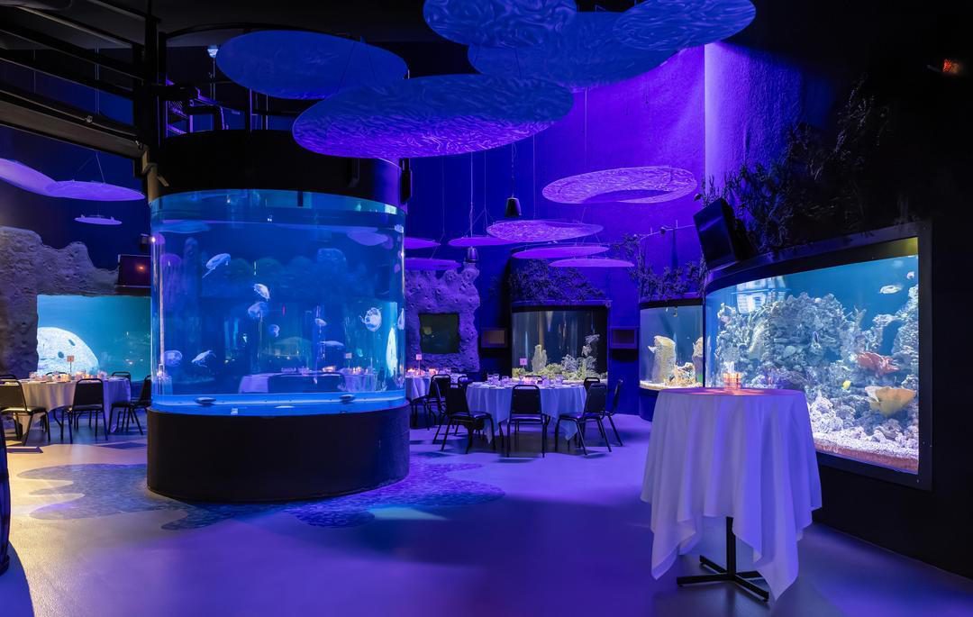 Récifs coralliens, murènes, tortues requins et méduses en offrent plein la vue dans cet univers marin exclusif au Zoo. Vos convives auront plaisir à surprendre les poissons-clowns au milieu des anémones, ou assister au ballet gracieux des raies guitares. Cet espace de type lounge se prête merveilleusement bien aux cocktails festifs, ou au 5 à 7 après une réunion d'affaires animée. Le lieu peut également accueillir des cérémonies de mariage et des banquets pour de petits groupes.