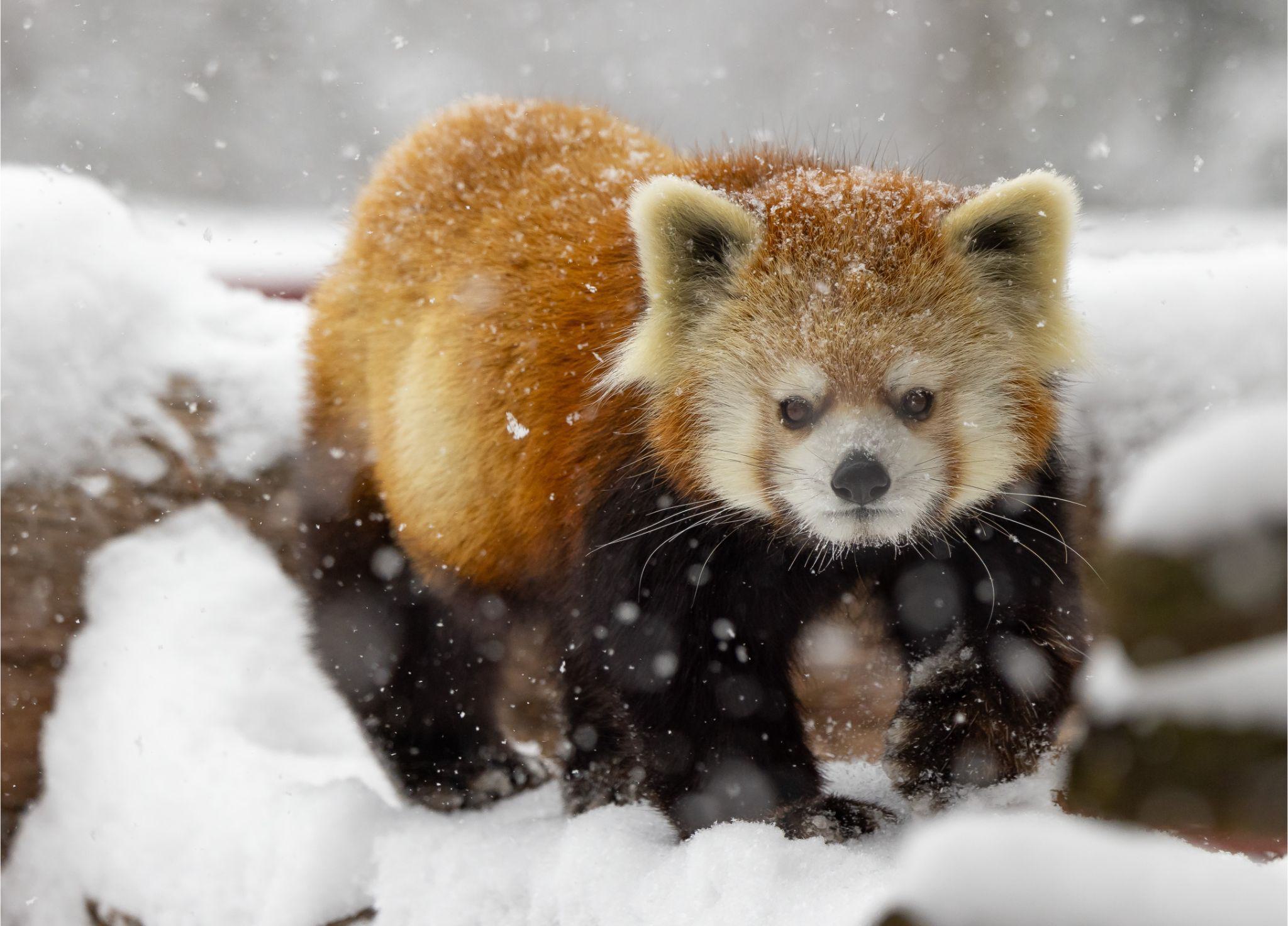 - L'hiver couvre les habitats d'un épais manteau blanc où s'amusent les léopards des neiges et les petits pandas.